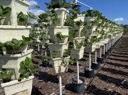 Our hydroponic Strawberry Patch Starts our fresh fruit and U-pick Season. It is planted in October and starts to ripen beautiful Florida Strawberries before Christmas. These early ripening gems, in stacked pots, make it so easy to pick. Dipped in chocolate, they make the ultimate holiday treat!
